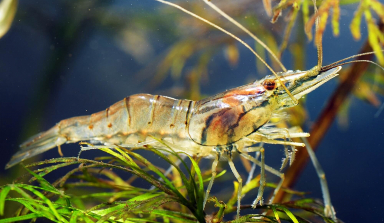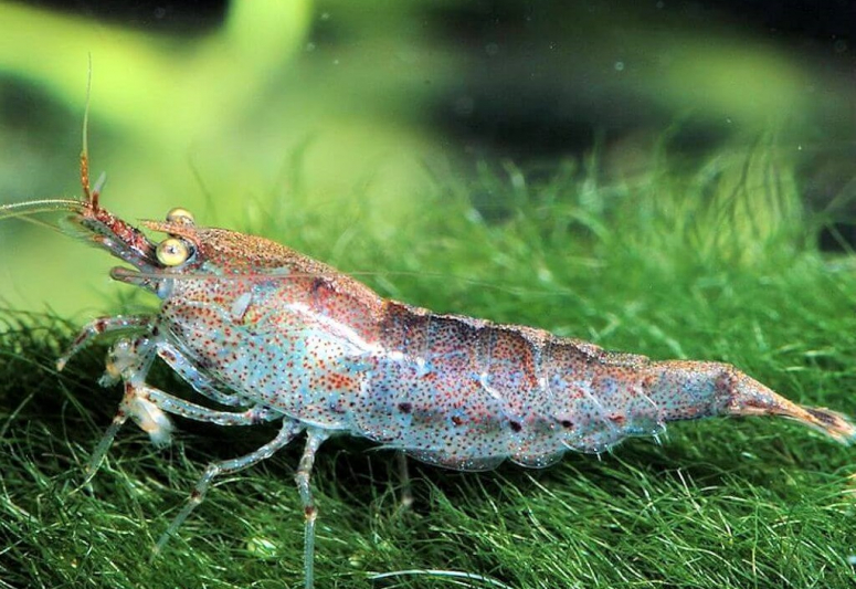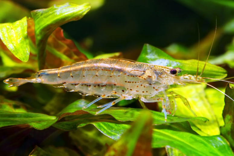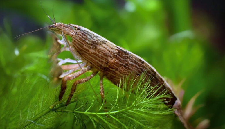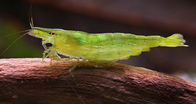 Второе название — травяная креветка. Тело рачка в самом деле прозрачное, словно из стекла, так что можно видеть внутренности. Родина стеклянной креветки — Япония. Взрослые особи достигают в длину 5 см, отличаются покладистым и спокойным характером. Чем питаются креветки в аквариуме — в основном микроводорослями и гниющей органикой. Сколько живут рачки, зависит от качества фильтрации и аэрации, но обычно до 2 лет.