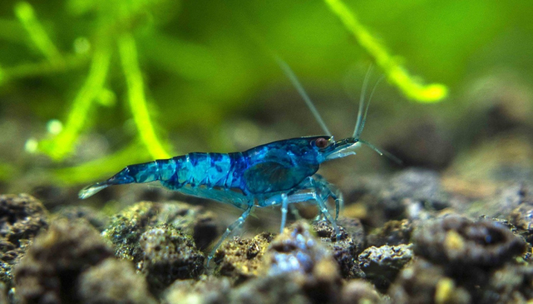 Карликовая голубая креветка получена европейскими и японскими селекционерами от неокардины. Главная внешняя особенность — насыщенно-синий окрас, причем брюшная часть полупрозрачная, сквозь нее просвечиваются внутренности. Взрослая особь достигает 2,5 см, живет до 3 лет. Креветка блю дрим неприхотлива, комфортно себя чувствует и размножается в небольшом аквариуме, поедает микроводоросли и разлагающуюся органику.