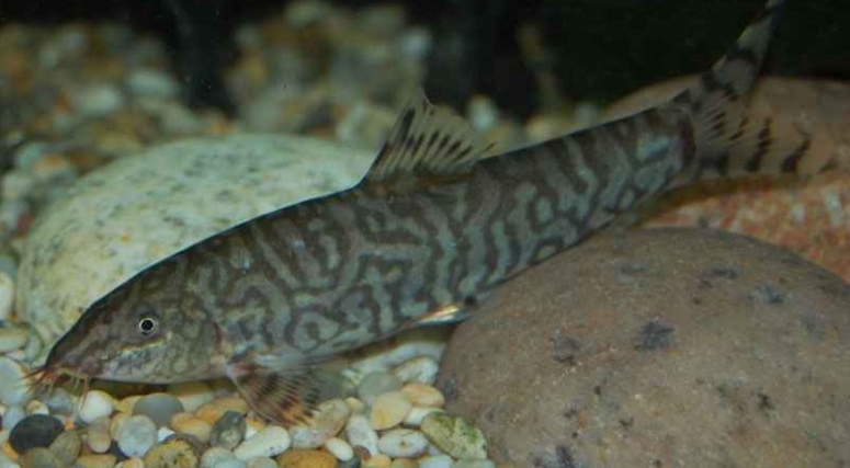 - Боция мраморная – имеет небольшие размеры (до 7-9 см), тело обладает молочно-жёлтым окрасом с чёрными, неправильной формы, небольшими, пятнами от головы до хвоста. Рыбка имеет характерное для боций строение тела. Доживает до 7-9 лет.