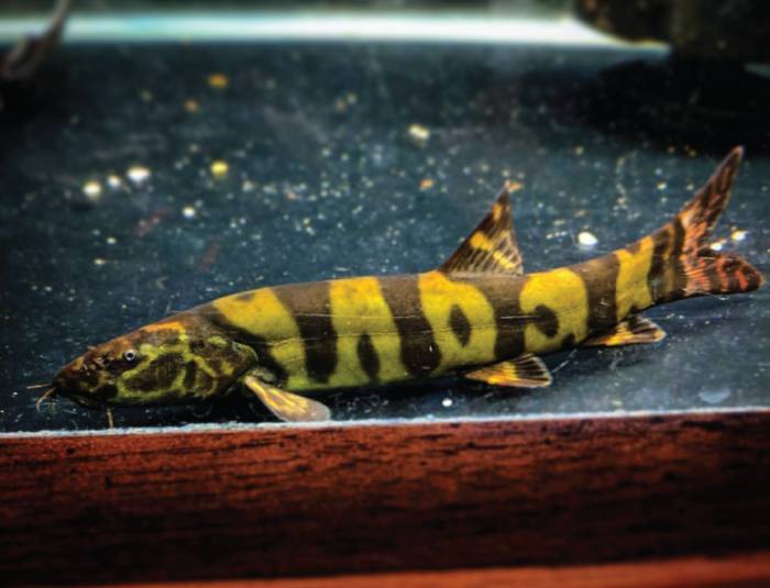 - Тигровая боция – имеет узкие поперечные полосы, на светлом фоне — тёмные. Полосы могут быть как контрастными, так и незаметными. В районе жабер есть мелкие пятнышки. Размеры не более 17 см.