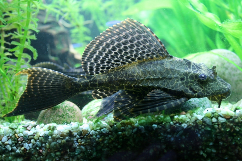 Глиптоперихты растут медленно, но стабильно. Поэтому им нужен аквариум объемом от 200 л.