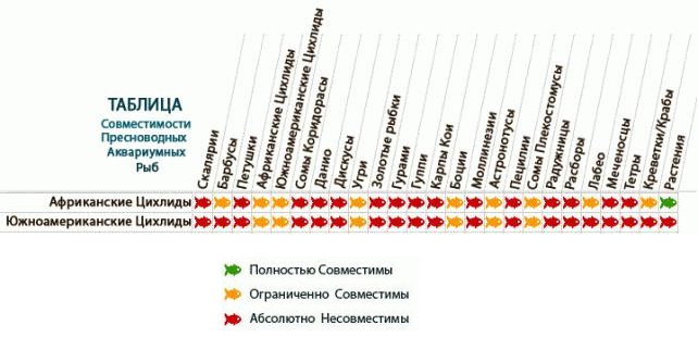 С другими рыбами цихлиды уживаются редко. Только наиболее мирные. Между собой в просторном аквариуме могут жить представители своих групп (например, только цихлиды Танганьики). Реже можно совместить «африку» и «америку». Обычно это невозможно из-за разных требований к условиям содержания. Будьте готовы к войнам между видами и внутри них. Цихлиды выстраивают иерархию, выбирают и охраняют укрытия и практически всегда имеют претензии ко всем соседям – будь то сестра-цихлида или сомик птеригоплихт. Но в этой неуживчивости и беспокойности и есть вся прелесть цихлидника!
