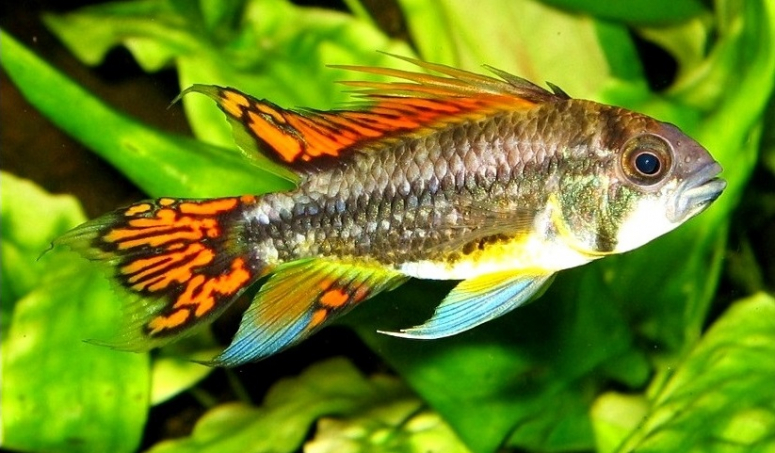 Апистограммы – яркие и интересные по поведению карликовые цихлиды, достаточно неприхотливые и мирные, что делает их распространёнными и желанными среди аквариумистов. Родина апистограмм – бассейн Амазонки. Вырастают эти рыбки до 8 см, живут в аквариуме около 4-5 лет.