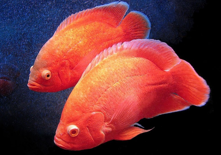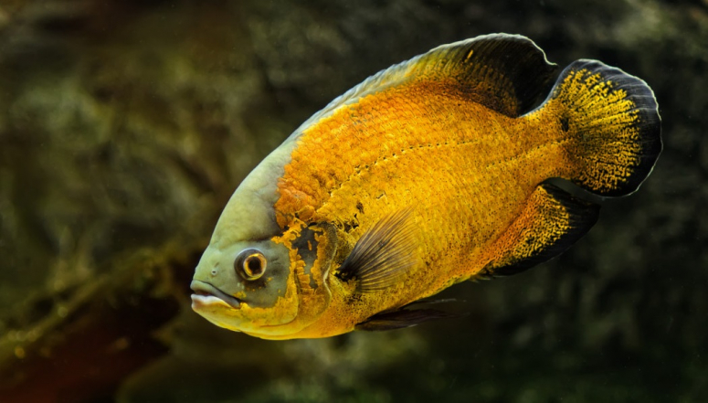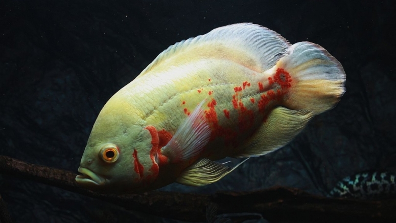 - Золотой оскар – этот вид рыбок очень схож с красными астронотусами, однако вместо красных и оранжевых цветов у них преобладает желтый, лимонный, золотистый.