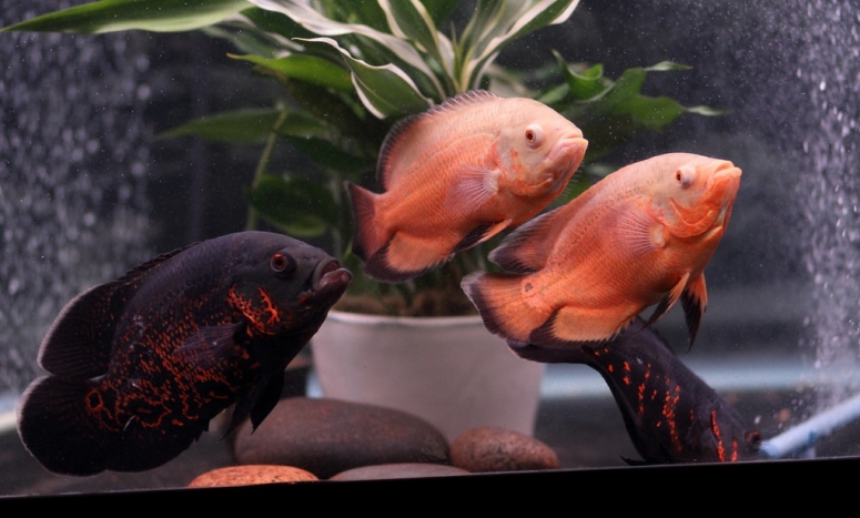 Прежде, чем подселять к этим рыбкам соседей, стоит помнить, что астронотусы довольно драчливы. По этой причине не стоит подселять к ним мелких рыбешек, которые вскоре станут обедом для первоначальных обитателей аквариума.