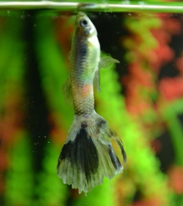 - Изменения в поведении гуппи: рыба плавает у поверхности и яростно захватывает воздух ртом;