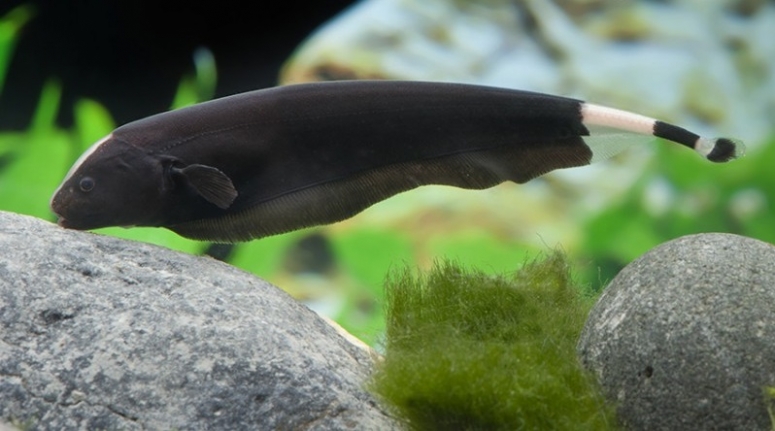 Рыба черный нож, еще одно ее название – аптеронотус белокаймовый, необычайная пресноводная рыбка, которую содержат в своих аквариумах многие любители пресноводных питомцев. Любовь к этой рыбке обусловлена ее красотой и интересным поведением, необычным внешним видом.