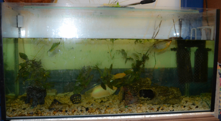 - Перенаселение. В среднем на одну рыбу требуется от 7 до 15 литров воды (в зависимости от размера). Если эта плотность нарушена, то за короткий срок в аквариуме скапливается большое количество отходов, и он неизбежно мутнеет.