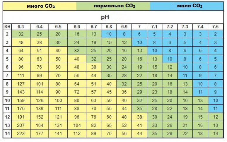 - Сколько углекислоты в аквариумной воде, можно контролировать при помощи тестов, которые продаются в зоомагазине. Также можно установить дропчекер, позволяющий определить степень жесткости воды. Принцип работы приспособления: жидкость в нем окрашивается в желтый цвет при избыточном содержании CO2, в зеленый – при нормальном, в голубой – при дефиците. При избытке углекислоты рыбы задыхаются и погибают, при недостатке страдают растения.
