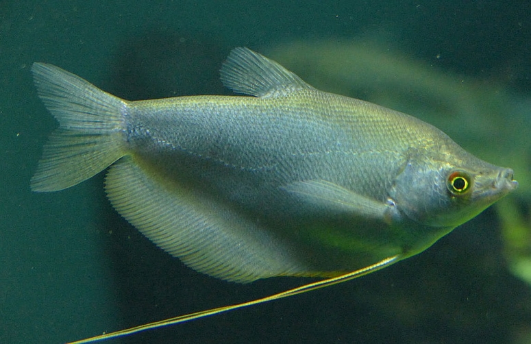 - Гурами лунный – представитель водоёмов Камбоджи и Таиланда. Всё тело имеет светлый серебристый цвет. Максимальный размер в аквариуме – 12 см.
