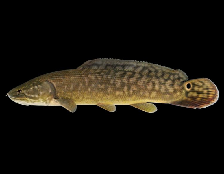 Древняя хрящекостная рыба, также называемая каламоихт калабарский (рыба-змея), достигает 90 см, обитает в индийских водоемах. Спинной плавник зубчатый. Полиптерус дышит атмосферным кислородом, поэтому плавает у поверхности воды.