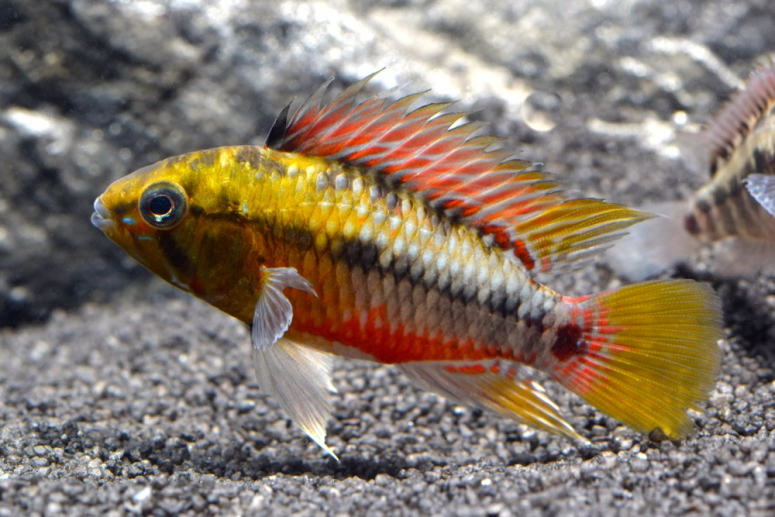 Карликовая цихлида, питающаяся насекомыми и планктоном. Выведено множество разновидностей с насыщенными, почти неоновыми окрасами. Поскольку апистограмма мелкая, то не трогает соседей, но может пожрать чужих мальков.