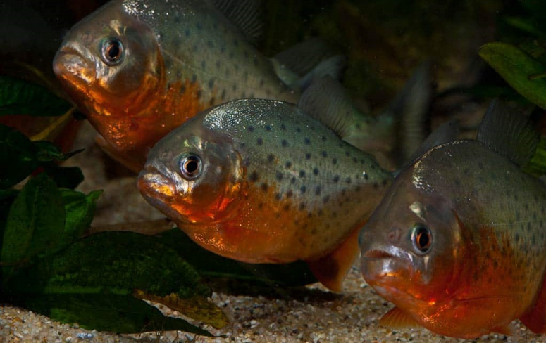 В аквариуме держат стайную красную пиранью, любителям экзотики нравится ее устрашающая внешность: сильные челюсти и острые треугольные зубы. Кормят ее курятиной, живыми рыбками. Оголодавшая пиранья способна напасть на родственника.