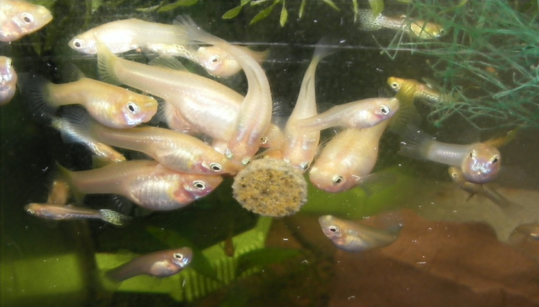 Мальков кормят три раза в день небольшими порциями. После определения и разделения полов переходят на двухразовое кормление. Отвечая на вопрос, чем кормить гуппи, можно порекомендовать специальный корм для них Tetra Guppy Colour. Есть также корм гуппи колор, усиливающий их окраску.
