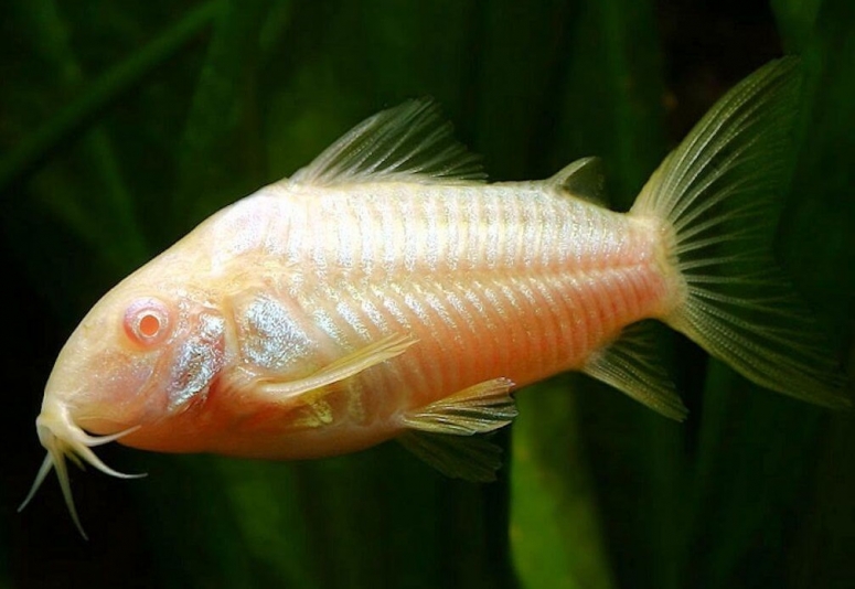 - Коридорас альбинос – имеет белое с розоватым отливом тело и красные глаза. Достаточно редкий, как и все альбиносы.