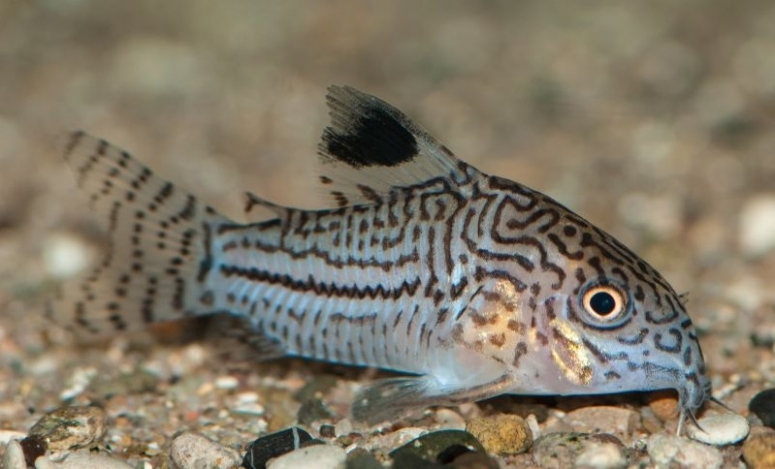 - Коридорас джули [Юлии], леопардовый – рыба с роскошной расцветкой: на перламутрово-желтоватом фоне множество тёмных пятен, напоминающих леопардовые. Могут вырастать до 6 см.