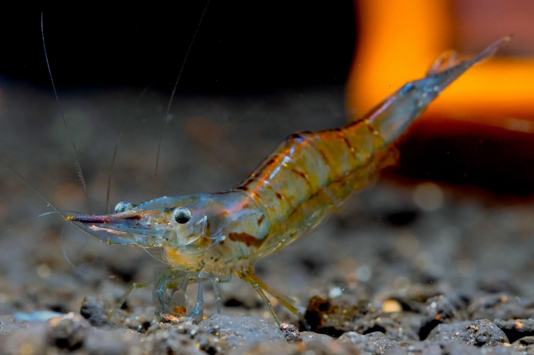 - Креветка Красноносая – полупрозрачный вид с красным рострумом и полосами вдоль туловища.