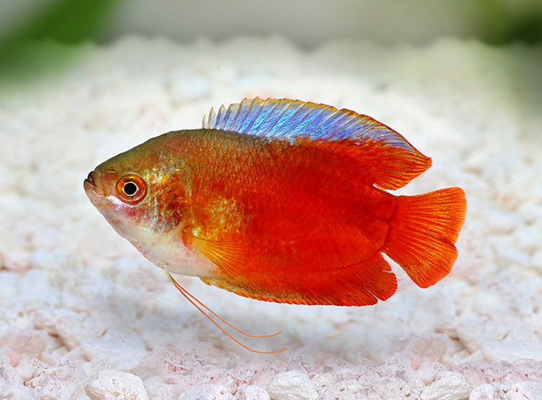 - Лялиус красный – тоже искусственно выведенная порода. Тело насыщенно-красного цвета с небольшими включениями голубого на плавниках;