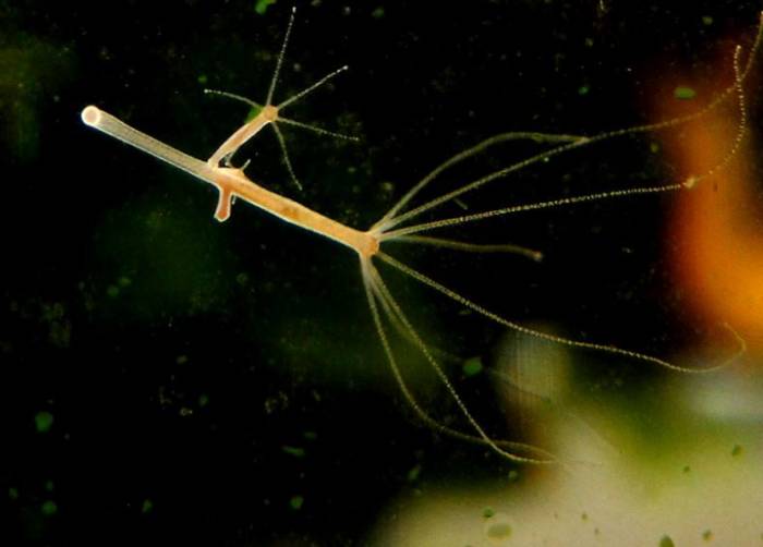 - Гидра – червь, безвредный для взрослой рыбы, изредка поражающий икринки и мальков. Разорванный пополам, не погибает, а регенерирует в две особи.