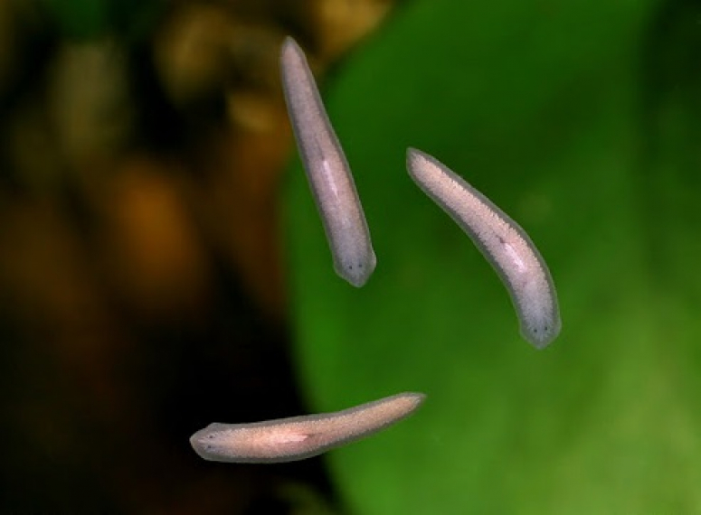 - Планарии – грунтовые черви. Выбираются наружу при изменении параметров воды: температуры, pH, жесткости. Это паразиты, достигающие в длину 2 см. Опасны не только для рыб, но и аквариумных ракообразных.