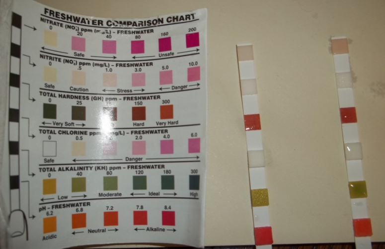 - Капельным тестом: воду из аквариума смешивают с реагентом в отдельной ёмкости, соблюдая пропорции, и смотрят за изменением цвета.