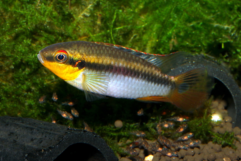 Чем кормить? В качестве лакомства можно использовать мотылей, дафний и артемий. Среди растительных добавок лучше отдать предпочтение спирулине или небольшим долькам свежего огурца. Обычный рацион пельвикахромисов состоит из живого или замороженного трубочника, дафний. При их отсутствии можно давать скобленое мясо.