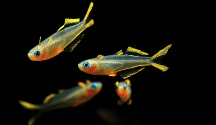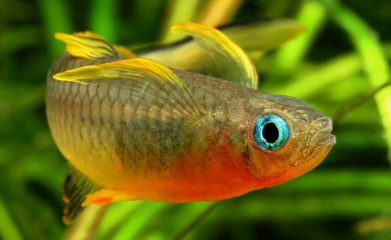 - Объём – на стайку из 6 особей будет достаточно 40-50 л. Меньше шести рыбок содержать не рекомендуется: всё-таки, синеглазка привыкла жить в компании себе подобных. Полноценную стаю из 30-40 особей нужно посадить в аквариум от 180 л;