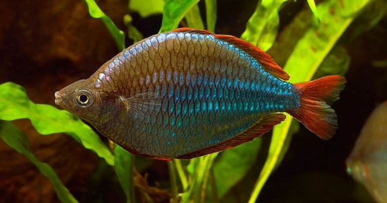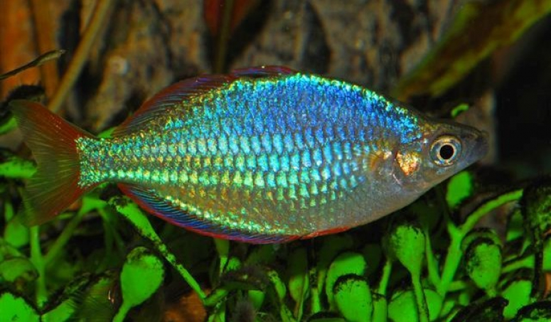 Радужница неоновая (лат. Меланотения Прекокс) – небольшая юркая рыбка класса лучеперовых. Ее чешуя отражает солнечные лучи, благодаря чему рыбка сверкает неоново-голубым цветом. Эта особенность привлекает внимание аквариумистов со всего мира.