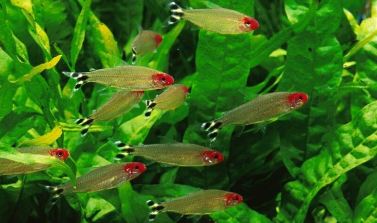 Правильным решением будет содержать в аквариуме группку красноголовой тетры — начиная от 7-8 рыб. Благодаря этому у них устанавливается определенная иерархия, которая влияет на их окраску и поведение. Для семи особей рыб необходим аквариум объемом в 50 литров. Данный вид тетр более требовательный, по сравнению с другими видами. Поэтому необходимо следить, чтобы вода была кислой и мягкой. Родостомусы предпочитают чистую воду, поэтому нужно постоянно следить за исправностью фильтров, и заменять часть воды (по 25% от всего объема) нужно каждую неделю. Рекомендуемый температурный режим воды – от 22 до 26 градусов.
