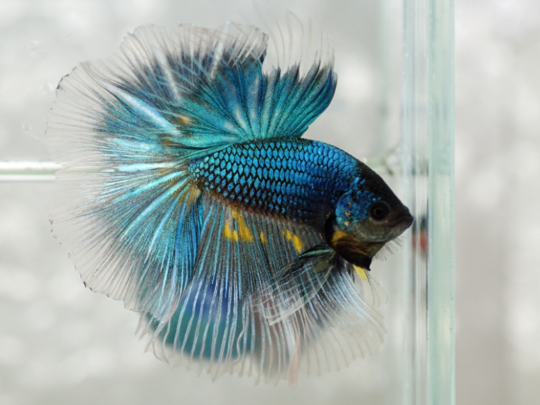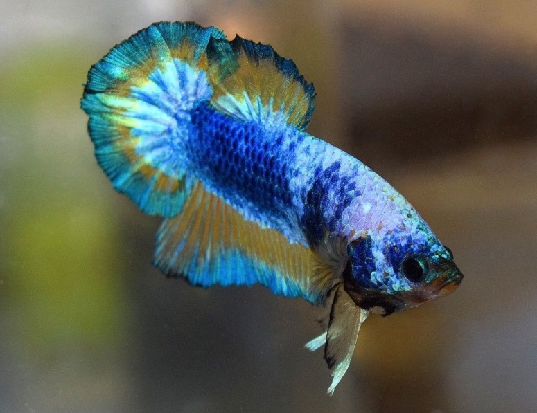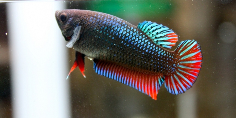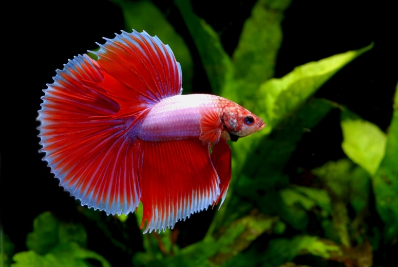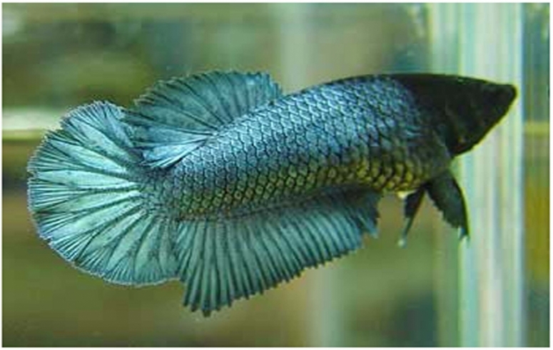 Рыбка петушок тоже отличается готовностью биться с соседями и чужаками в любое время, и тоже ценится за роскошь хвоста и плавников.