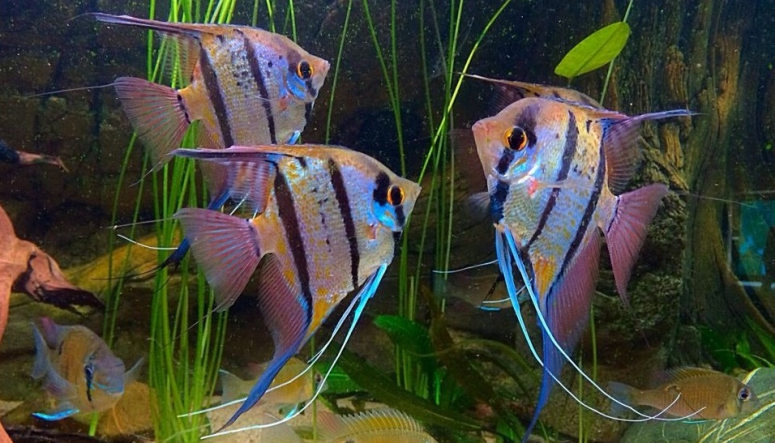 Кроме того, есть некоторые виды, являющиеся относительно совместимыми со скаляриями. То есть при наличии подходящих условий, прежде всего, достаточного простора, они могут сравнительно неплохо жить вместе. К таким видам можно отнести данио-рерио, гуппи, угрей, барбусов, дискусов, неонов, меченосцев, петушков. Если аквариум достаточно просторен, то сосуществование вполне возможно. Однако желательно чтобы эти рыбки росли вместе, тогда они привыкнут друг к другу, и не будут вступать в борьбу за территорию. Также в этом случае в аквариуме должно быть достаточное количество водной растительности, где мелкие рыбки смогут прятаться. И всё же при таком содержании потребуется уделять много внимания. А вообще, такое сожительство не рекомендуется, хотя внешне это выглядело бы просто замечательно.