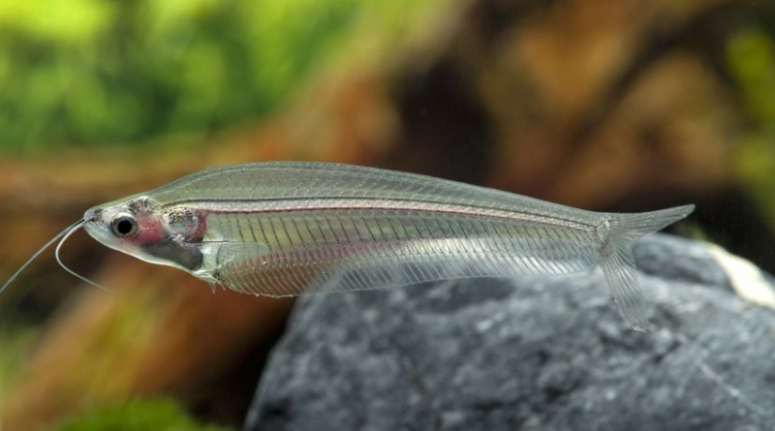 Стеклянный сом имеет также другие названия, связанные с его необычным внешним видом – рыба призрак или прозрачный сом. Название рыбки указывает на прозрачность тела и отсутствие плавника, расположенного на спине.