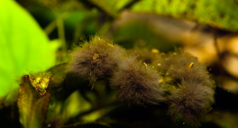 Паразит селится на растениях, также на камнях, корягах и других деталях аквариумного декора.