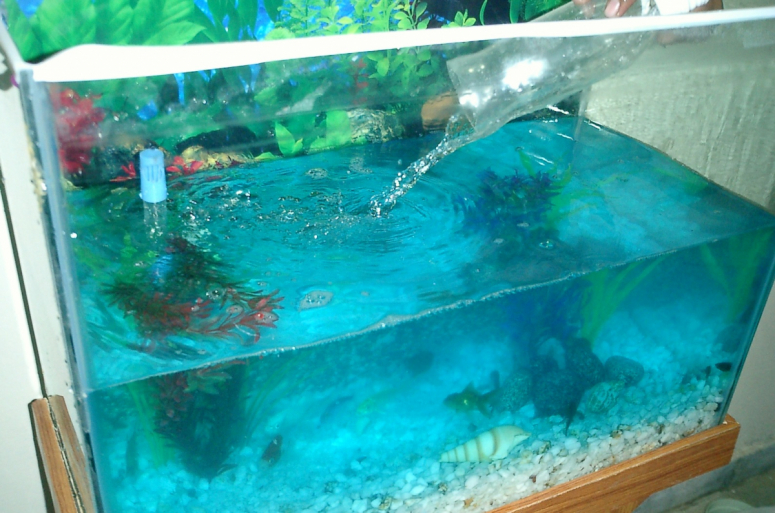 Чистота за стеклянными стенками – непременное условие домашнего биотопа. Вода содержит вещества, необходимые для жизни. Рыбки не только дышат растворённым кислородом, они получают из жидкости полезные микроэлементы. Чтобы был постоянный приток свежих соединений, воду нужно регулярно освежать.