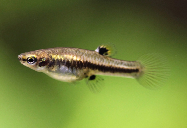 - Неогетерандрия элеганс. Пока малоизвестная порода, имеет яркий тигровый окрас и неприхотливый характер. На пару рыбок размером 2,5-3 см достаточно 10 литров воды. Хорошие рыбки для новичков, есть один минус: пока их сложно встретить в продаже.
