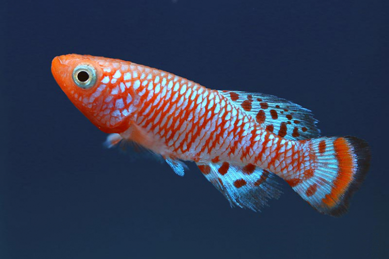 - Нотобранхиус Рахова. Самцы этих рыбок невероятно яркие, оранжево-синие. Для одной семьи из 2 рыбок достаточно ёмкости 20-25 литров. Но требовательны к параметрам и температуре (предпочитают прохладную воду).