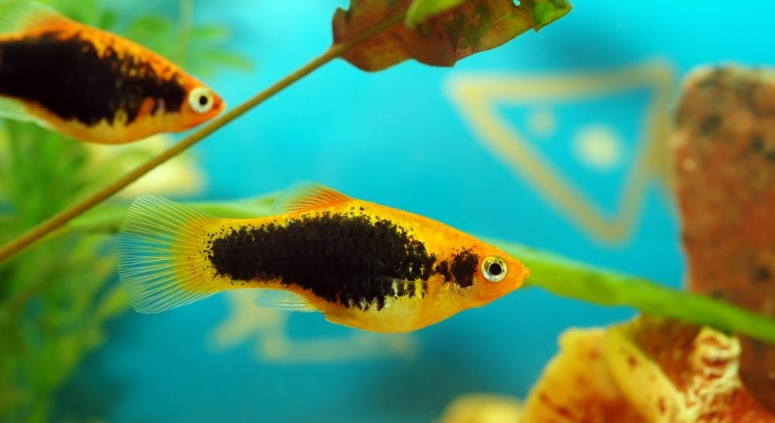 - Пецилии – достаточно терпимые к плохим условиям создания. В отличие от цветных рыбок гуппи имеют сдержанную гамму и несколько боевой нрав. Легко помещаются в аквариумы от 30 литров, но предпочитают резервуары побольше. При перенаселении могут начать войну. Часто в небольших аквариумах соседствуют с маленькими сомиками.