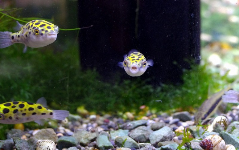 Питание: Лучший способ создать полноценную диету — это кормить карликового тетрадона мелкими улитками (физа, катушка, мелании) и замороженными кормами. Если говорить о заморозке, то любимая их еда — мотыль, затем дафния и артемия. Если у вас тетрадоны отказываются есть замороженные корма, смешайте их с живыми.